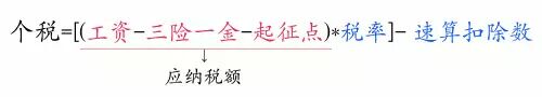 个人所得税的定义为“个人取得的各项所得征收的所得税”。2011年我国将个税起征点从2000元上调至3500元,使得缴纳个税的人数从8400万降到了2400万。那么个人所得税究竟是怎么计算的呢?这里有个计算公式: