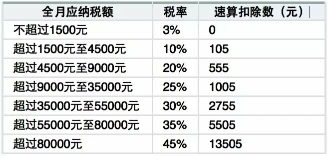 5、速算扣除数:由0到13505,也有7个等级,与不同税率相对应: