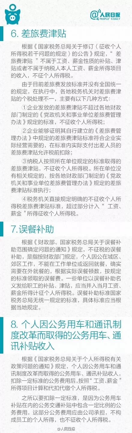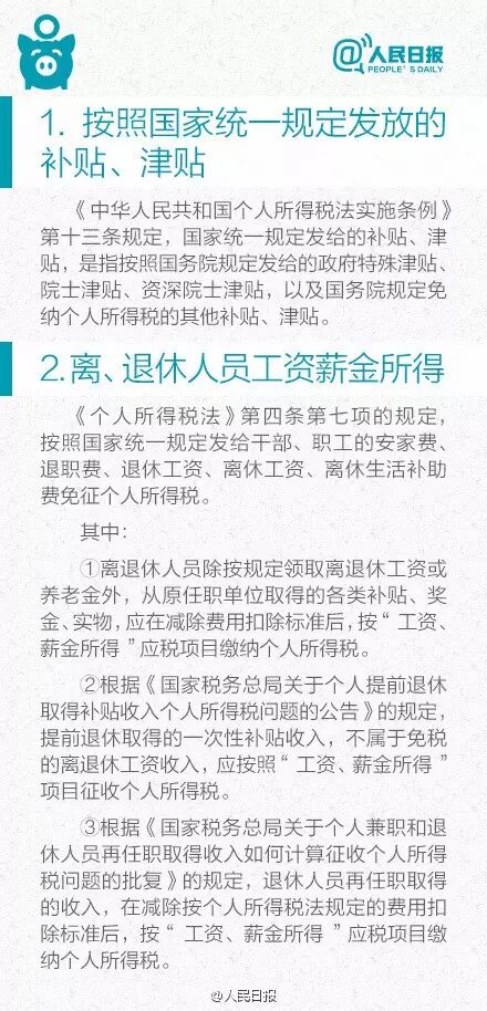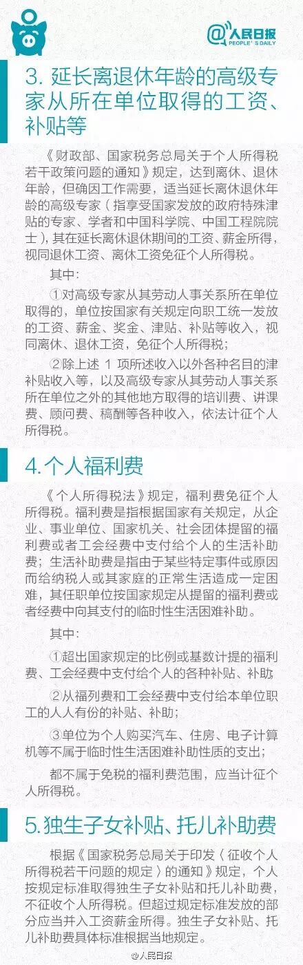 这些收入不用交个人所得税